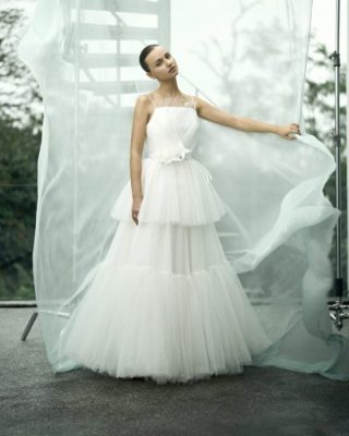 这个系列的设计灵感源自于大自然,并在设计里展现了优雅格调,并大量运用了花样蕾丝点缀,再加上细节上的刺绣,让每一件婚纱在设计上都流露了独特及浪漫的感觉。