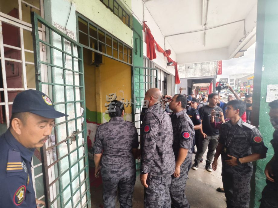 雪州大臣拿督斯里阿米鲁丁在取缔行动后,抵达现场召开新闻发布会。