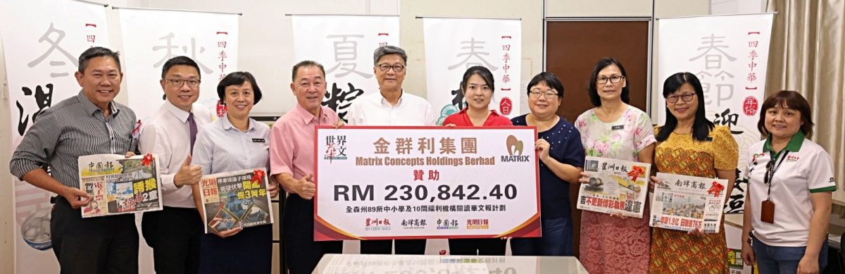 金群利集团副执行主席拿督斯里李典和热心守护华文报,今年慷慨赞助世华媒体集团旗下4份华文报章,即《星洲日报》、《南洋商报》、《中国报》及《光明日报》予森州89所中小学及福利机构,总共23万842令吉40仙的经费。
