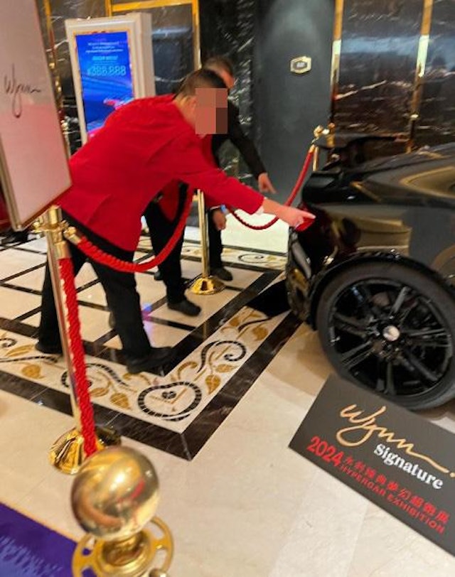 (澳门6日讯)网上疯传有男童参观澳门超跑车展时,疑似撞凹正在展览的一辆名车,目击者指被撞的名车是“Aston Martin One-77”,全球限量77辆,每辆要价约300万美元(约1265万令吉)。事后有职员和保安随即上前检查名车受损情况,家长则忙于和职员商讨,及后更有警察到场协助。