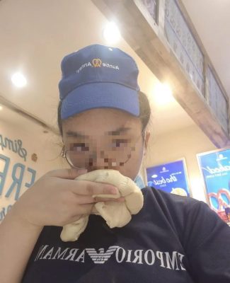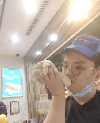 根据一网民今日在脸书发布的贴文及照片视频显示,Alice Chang疑在餐饮店的分行内工作时自拍和录制视频,可见她不断摆弄面粉团,甚至嘴对嘴亲吻着面粉团,过程中并没戴上手套。
