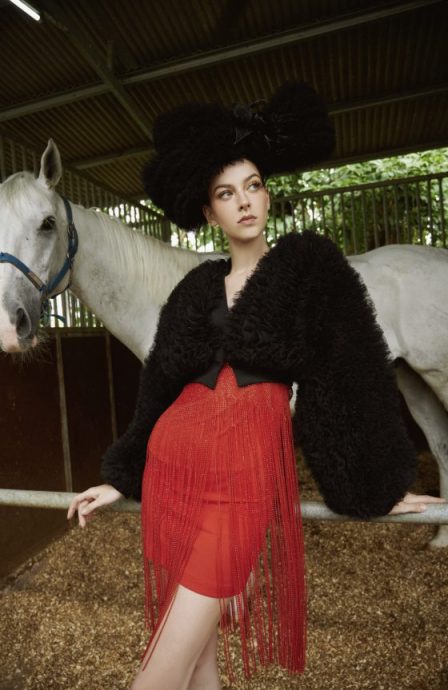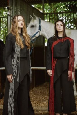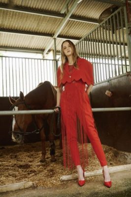 在品牌为2025年春夏而设的The Aurora极光系列里,便不乏红色的设计,附有流苏的西装外套及搭配小披肩外套的裤装,具中性的设计里,同时夹带一份柔和的流苏设计,毫不掩饰的展现了现代女性张扬的个性及力量,柔和却坚毅。再以红色的串珠结合独特的设计,如一道红色的极光,落在衣服上成了亮眼的点缀。