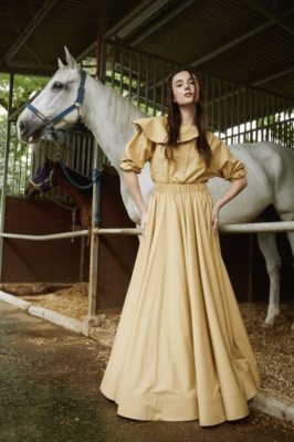 新系列也加设了大地色系的设计,包括甜美风格中不失个性的连身V领短裙,可依不同场合搭配短裙、长裙等单品。另有以褶皱造型呈现的轻盈雪纺设计等,满足了女性在日常穿着造型上,对完美衣橱的要求。