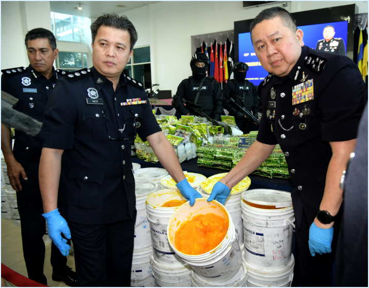 警破获黄油桶藏毒案 起获逾800万令吉冰毒