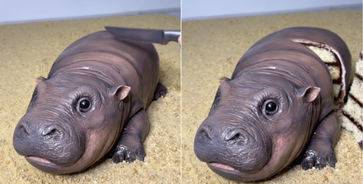 Ben的最新作品是一个栩栩如生的河马造型蛋糕,原型为来自泰国绿山动物园的第7只侏儒河马家族成员Moo Deng,其浮夸又生动的表情掳获许多网友的心。