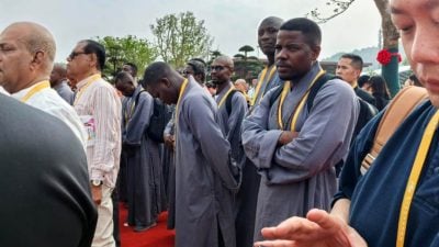 现场看到来自世界各地的佛教界人士,中国、日本、韩国、印度….还有不少非洲国家的佛教界代表。
