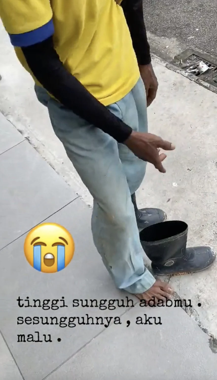 男子凯鲁拍下这名劳工的一举一动,随后将其上传到社交平台TikTok账号“@Khairullezran Mat Khir”,并大方称赞对方拥有崇高的品德。
