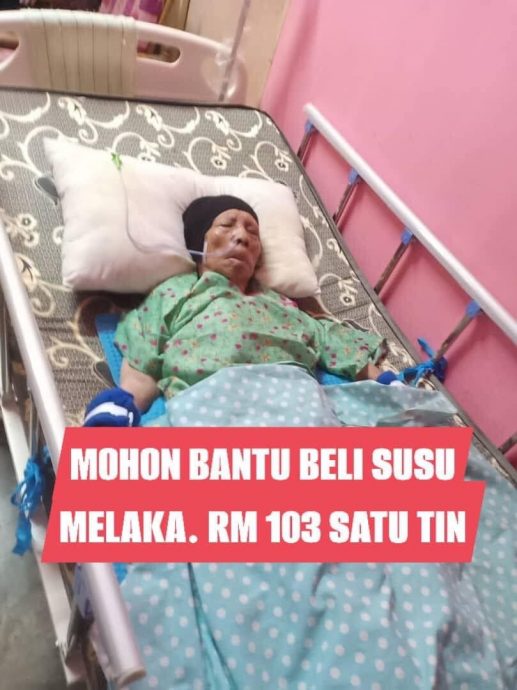 “这名老奶奶已经85岁,她患病了,需要喝Nuetren奶粉,每罐100令吉,家里人买不起,希望有人愿意捐款。”