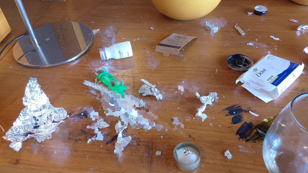 浴室里留下吸毒残留物品。(取自网络)