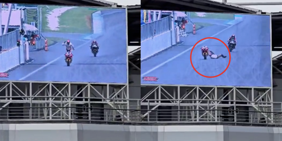据悉,此事发生在马来西亚超级摩托车比赛(MSBK)上,许多网民看见这一幕纷纷惊叫,直呼好痛!