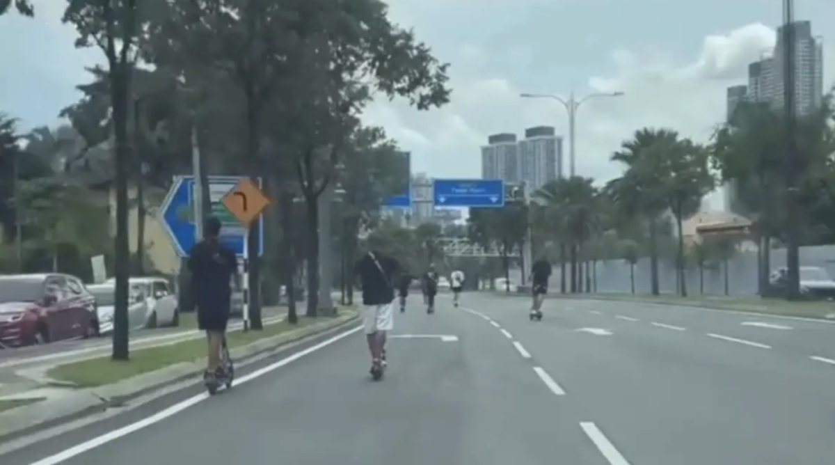 (吉隆坡23日讯)8名男子在大道上危险骑电动滑板车,无视其他道路使用者,引起热议。
