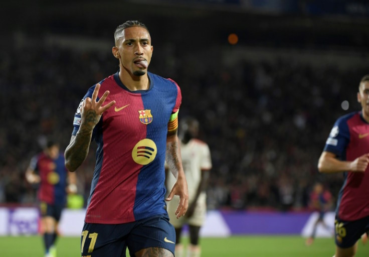 拉菲尼亚除了在开场57秒便闪电破门,他还只用了55分钟便完成帽子戏法,巴塞痛快复仇拜仁。(法新社照片)