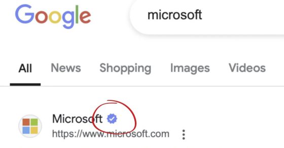 报道称,他们发现Microsoft、Meta、Epic Games、Apple、Amazon和HP的官网链接都有出现“蓝勾验证”。不过,当他们切换到另一个谷歌账号时,这些标志就会消失。这也表明谷歌还没有正式向市场推出这项功能。