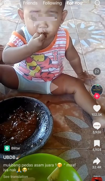 一名据信来自印尼的母亲,亲自录下年幼孩子吃酸辣食物的行为,招来部分网民批评。