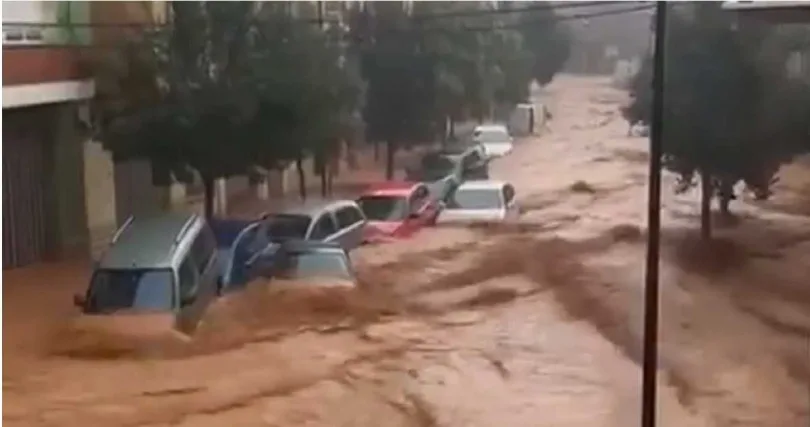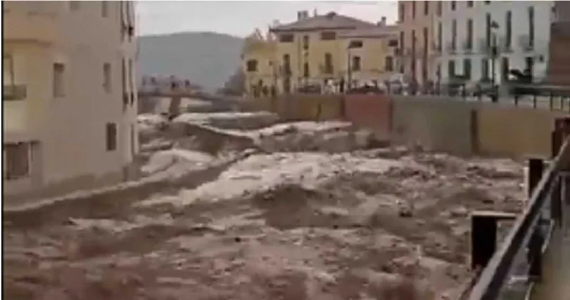 根据居民用智慧型手机拍摄和西班牙电视台播放的影片,洪水把汽车冲走且涌入建筑物。