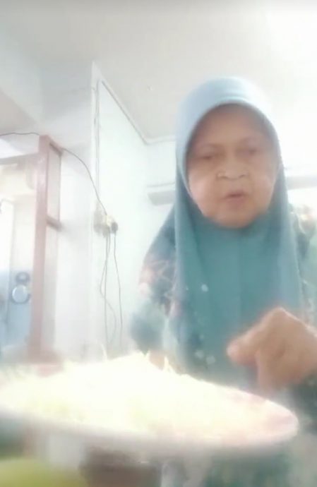 视频中,可见老奶奶Kak Cik在录制自己做菜,并在一边准备的同时,也描述了自己所使用的食材。