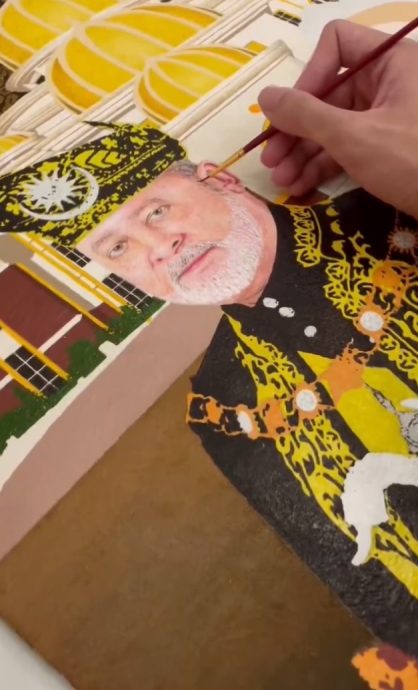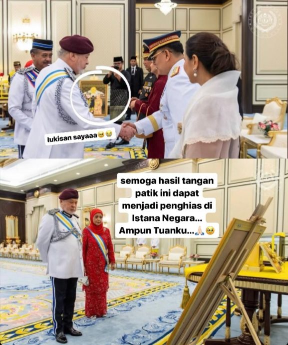 根据男子“@wisyilukis”在社交媒体X上发布的照片和视频,他分享这起发生在他身上的快乐时刻,指自己的绘画作品竟然得到了王室的赏识。