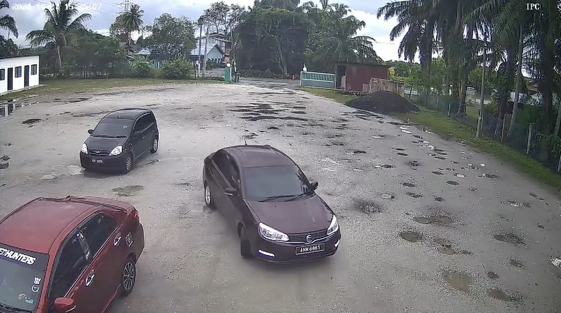 (八打灵再也3日讯)社交媒体广传一个视频,一辆宝腾赛佳在一个偌大的停车场倒退时,撞上了另一辆停在有点距离的第二国产Viva,然而当时停车场却只停着3辆车!