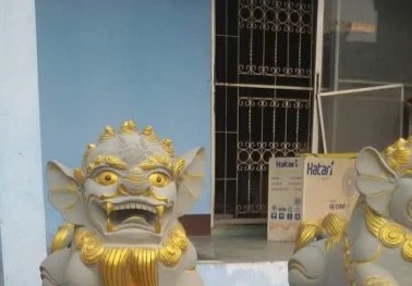 村民表示,该名风水师后来把国外进口的石狮子放进仓库,每天都有卡车和铲车从码头将石狮子运来运去,估计是要运到顾客所在地举行仪式,不过,近四五个月已经无人管理仓库。