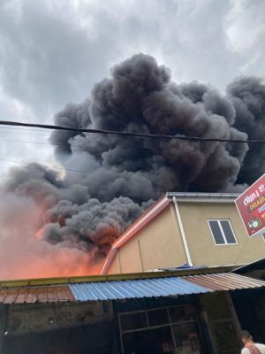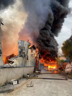(八打灵再也6日讯)火魔今早造访双溪毛糯新村2间木板和铁厂,火势迅速蔓延将建筑物吞噬,所幸没有酿成人命伤亡事故。