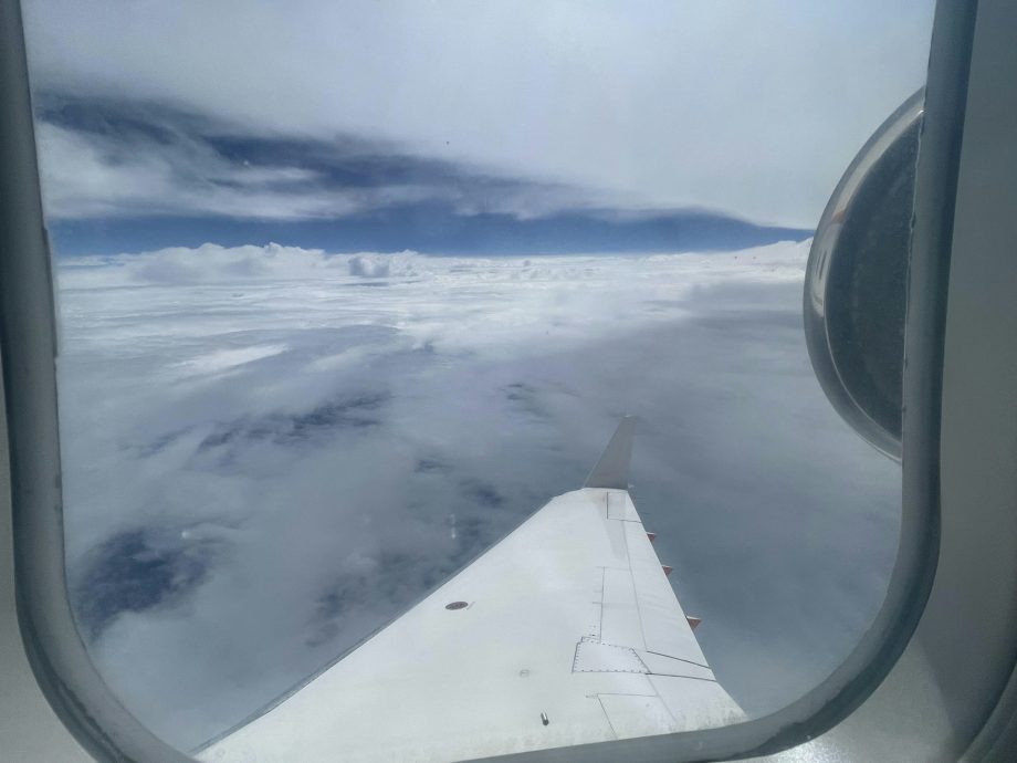 图为香港政府飞行服务队周三派出定翼机,进入桃芝风眼一带,投入探测仪数集气象数据。