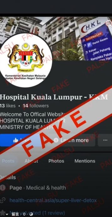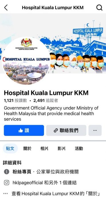 吉隆坡中央医院(HKL)公关部经由官方脸书上发布澄清,上述具有一样名字,一样是“Hospital Kuala Lumpur-KKM”的账号,看似是个假账号。