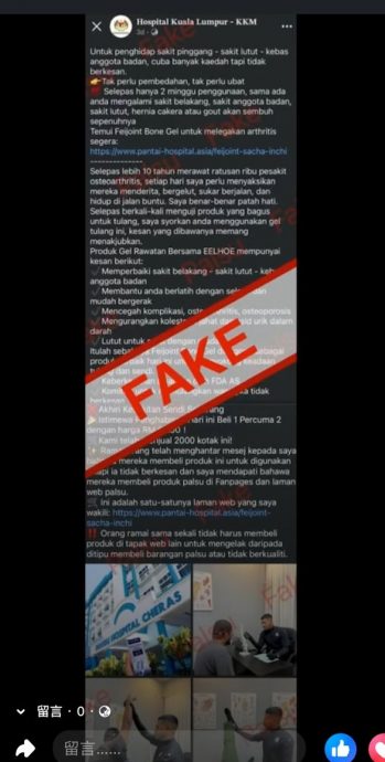看到假账号,民众受促提高警惕,并谨记要核实信息来源,及依赖吉隆坡中央医院的官方渠道获取可靠的资讯,以免被虚假消息误导,影响决策或行为。