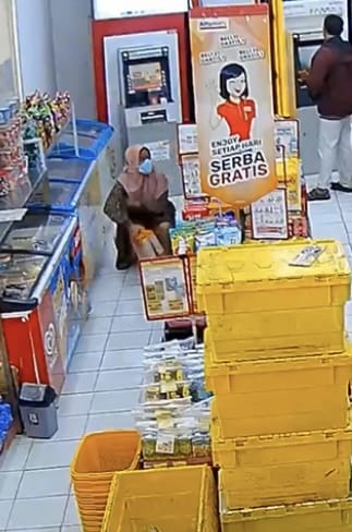 (雅加达14日讯)趁店员不注意,大妈竟撩起长裙,将两盒零食藏在胯下,还若无其事溜出超市!