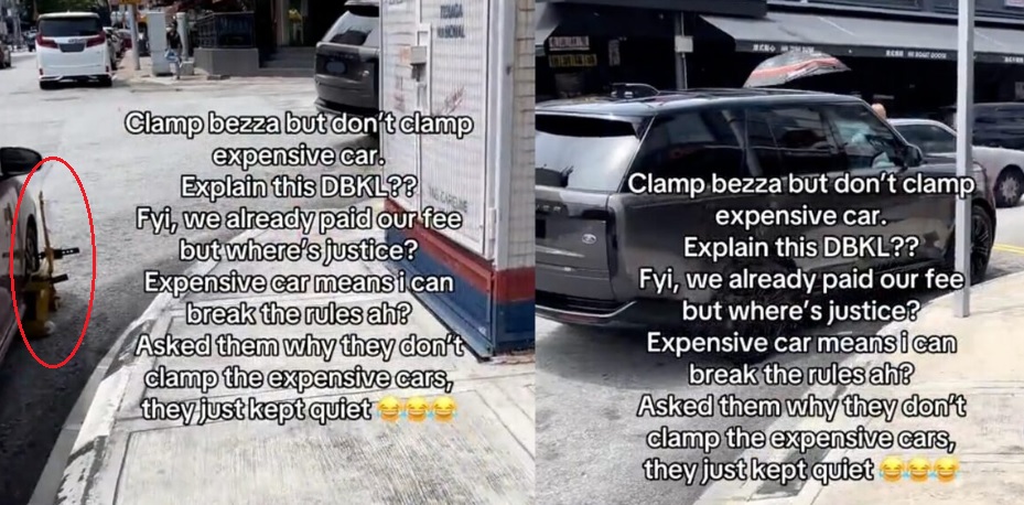 (八打灵再也13日讯)执法双重标准,还是锁轮器不够或不符轮谷尺寸?一名男子近日在社媒发视频,质疑执法人员锁轮时双重标准,只向他的Bezza轿车锁轮,停在他前面的两辆豪华却没被锁轮,引发热议。