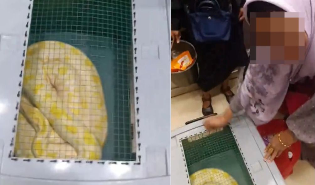 一名网民近日在其TikTok帐号@awangfaizalawangy1上传一段视频,可见他带着一条大白化蟒蛇搭电梯,当时电梯里有3名老妇。