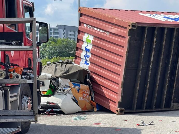 该起意外于本月13日上午9时左右发生,1辆重型牵引车从武吉丁雅路左转入哥本西烈路时,后方挂车上的集装箱失衡倒下,压中在等候红绿灯的2辆轿车并擦撞另外3辆轿车和1辆卡车,导致驾车去上班途中的李紫柔(21岁)身亡,另一辆车的男司机(25岁)则重伤。