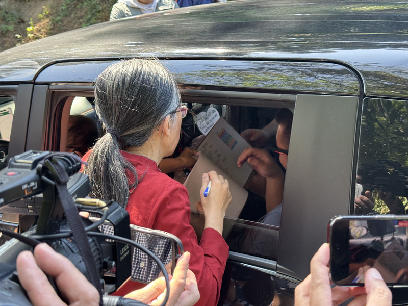 园区大门工作人员逐一核对宾客名单后才可放行入园。(中央社照片)