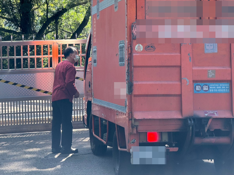 园区大门工作人员逐一核对厂商车辆及宾客人员名单后才可放行。(中央社照片)