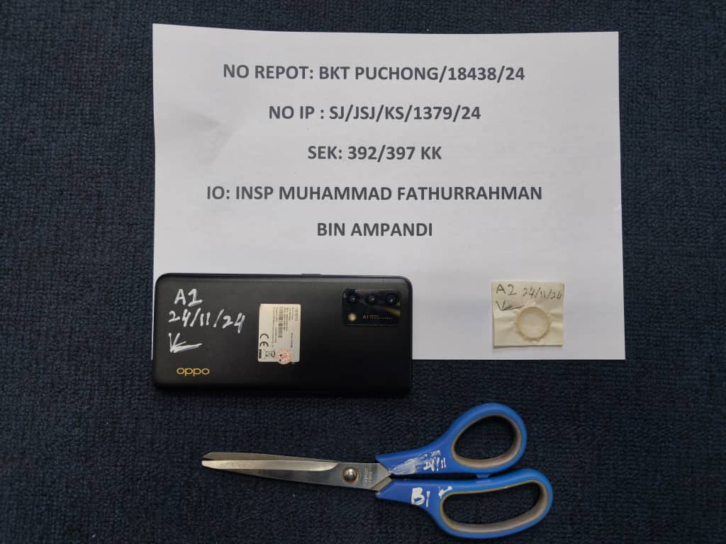 梳邦再也警区主任旺阿兹兰助理总监指出,警方于昨日晚上9时接获女事主的投报指,她于昨日独自一人呆在位于蒲种乌达玛的住家,不料因忘记锁门导致窃匪持剪刀入门抢劫,期间因她曾大声呼叫,还遭匪徒捆绑双手及以衣物塞嘴。