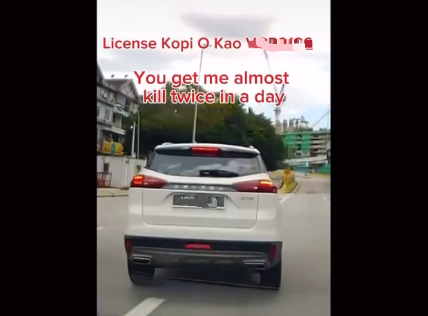 后方车主在视频中愤怒大喊:“你会不会开车的!”并表示这辆车竟在同一天内两次差点让他“丧命”,让他气愤不已:“驾照是咖啡乌Kao!”