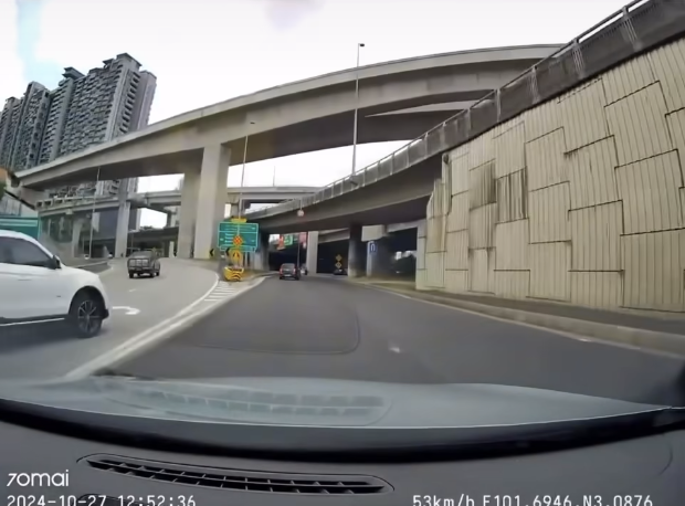 根据一段在网络上疯传的行车记录仪画面显示,第一起险情发生在中午12时52分。