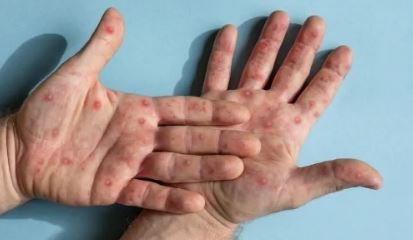 “患者自11月15日起,手部、身体和脚部开始出现皮疹症状,并于11月23日就医。”