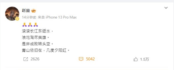时隔3年终现身微博 赵薇哀悼琼瑶引剧迷泪崩