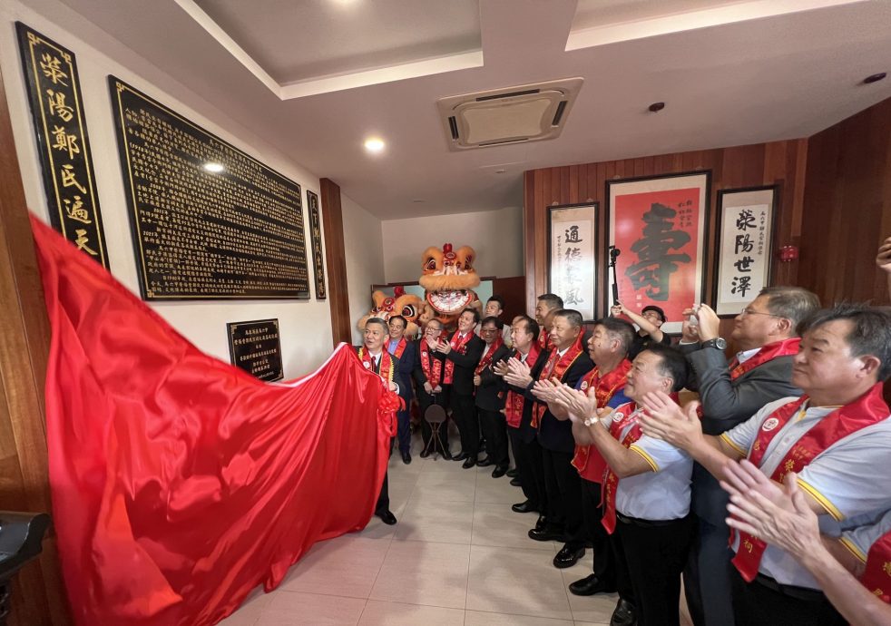 同时,郑学方亦受邀为大厦内的落成开幕纪念石碑主持揭幕仪式,马六甲荥阳堂郑氏宗祠族长兼大会主席郑金福则为《荥阳堂》堂号牌匾主持揭幕。
