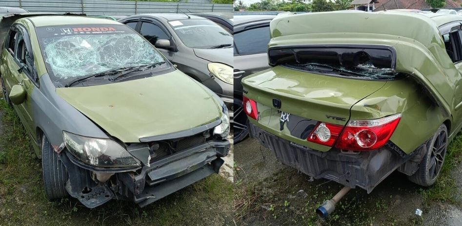 根据一名网民依斯哈近日在脸书发布的照片和帖文,指这辆被砸坏的轿车,以2000令吉起的价格拍卖中。