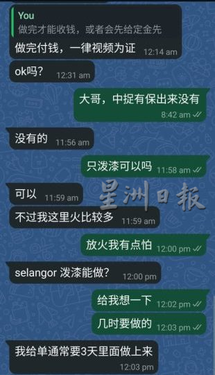 招聘者自认出手不低,泼漆一单酬劳600令吉,抛掷汽油弹高达1000令吉,但跑腿需自备工具,并在3天内完成任务。