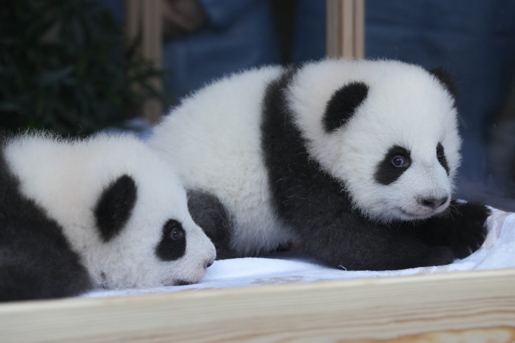 旅德大熊猫双胞胎幼崽满百日 定名“梦好”及“梦甜”