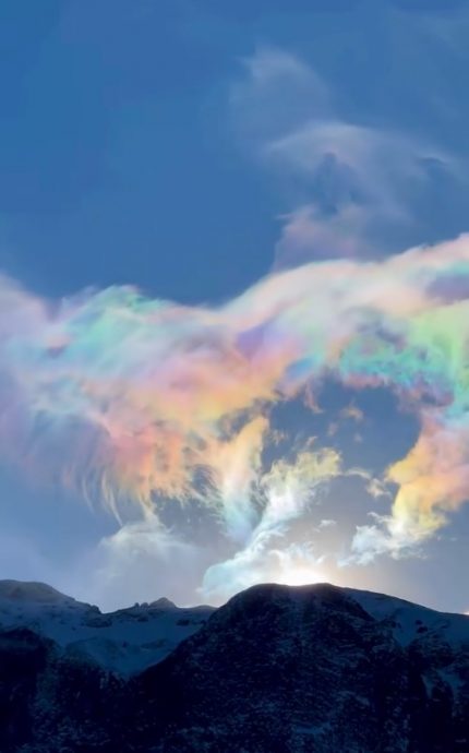 有气象人员表示,七彩祥云是一种气候现像,在云与太阳相对位置和许多因素下才能见到这样美景。当一股稳定且潮湿的气流吹过山丘,会呈现波浪状上下摆动的情形,气流被迫抬升时,蒸气遇冷而凝结成云,而气流下沉时,因为变暖就再次蒸发化为不可见的蒸气,云就不见了,如此反复,因地型而生的“荚状云”就会出现。