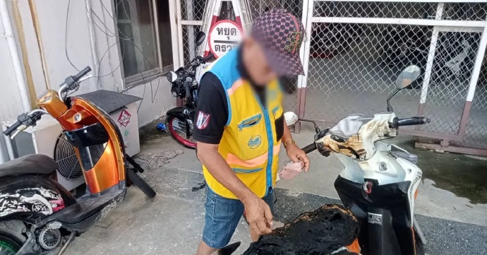 (曼谷7日综合电)泰国一名父亲因为儿子和女儿在泰国父亲节当天没有回家探望自己,越想情绪越低落,心生怨气下一把火将自己的摩托车烧毁,发泄心中的愤怒。