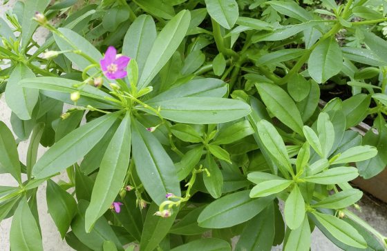 母亲的小菜圃和周遭的野地,随时会见到一棵棵绿得像翡翠的植物,伴有粉红色小花,长得很茂盛。我好奇它怎样能遍布各角落,到底是风儿、鸟儿还是蜜蜂等帮忙播种吗?