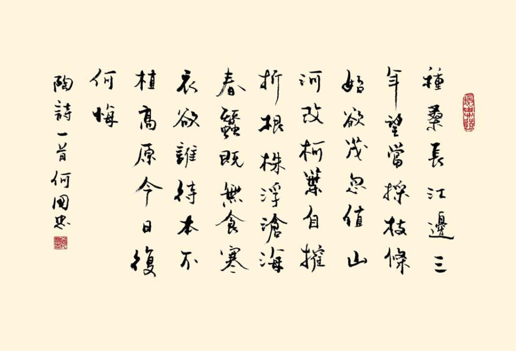 这是陶渊明〈拟古九首〉之九。内容说在长江边种桑,指望三年后采叶。眼看枝条日渐茂密,滔滔江水忽来,江岸崩溃。树叶被摧折,根株漂浮大海。无叶可食,春蚕如何吐丝,无丝织布,寒衣何来?应将桑树种于高原,如今懊恼无用。