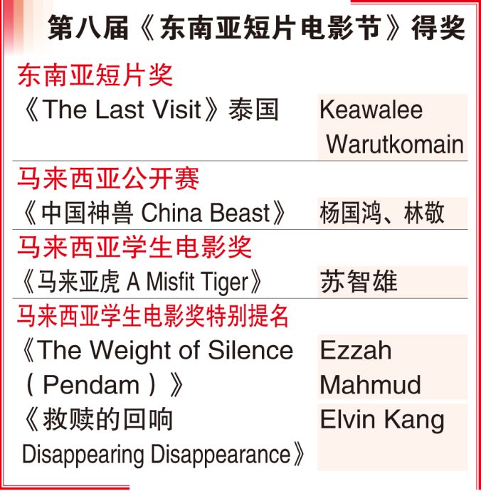作为一种独特的电影表达形式,逐渐受国际电影圈所重视。虽然东南亚的短片创作风气不及欧美地区,近年来却也培养出不少透过镜头语言良好地保留和展现了东盟地域特色。