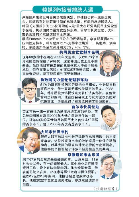 (首尔15日综合电)韩国国会通过对总统尹锡悦的弹劾动议后,韩国最大在野党共同民主党党魁李在明星期日表示,共同民主党决定暂时不针对12月3日的戒严风波对代行总统职权的总理韩悳洙提出弹劾,指过多弹劾恐致政局混乱加剧。