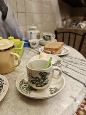 以前在茶室吃早餐时,最喜欢的就是观察周边其他食客用餐的情况。有时,你会看到隔壁桌的阿公只点了一杯咖啡,然后把滚烫的咖啡倒出一半在杯碟中,给身边的孙子享用。那小孩高兴地捧着杯碟,小心翼翼地吹着气,然后沿着杯碟的边缘慢慢地“吸”咖啡。
