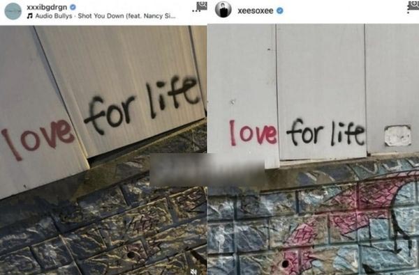 近日,韩网Pann流传着GD和韩韶禧疑似正在谈恋爱的传闻,网民根据2人在社群网IG上发布的照片推测,2人疑似身在同一场所拍摄,其中一款照片是2人各自坐在同款沙发上,摆出类似的甫士,另一款照片则是2人各自上传“LOVE FOR LIFE”的壁画照,疑似在同一场地拍摄,因而被网民怀疑是否隔空传情。